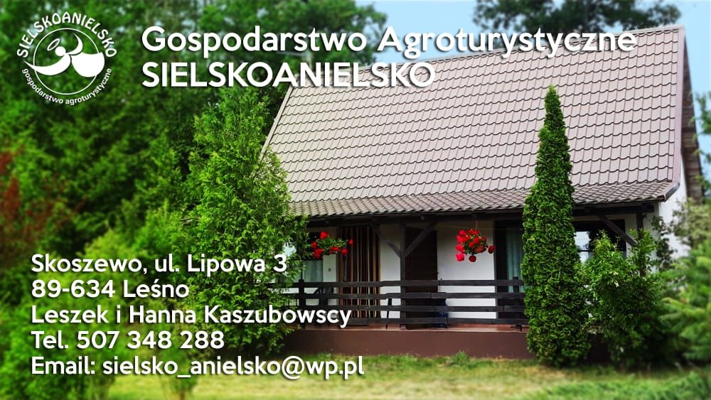 Zapraszamy Państwa serdecznie do gospodarstwa agroturystycznego Sielskoanielsko, malowniczo usytuowanego na skraju niewielkiej wsi Skoszewko. Na naszych Gości czekają cztery w pełni wyposażone domki letniskowe, znajdujące się w stwarzającej komfort wypoczynku odległości kilkudziesięciu metrów od zabudowań gospodarczych.